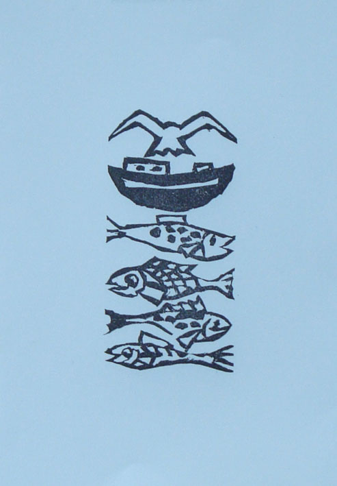 Zee Landschap Vis Kunst Natuur Grafiek Kust Grafisch Boot Origineel Eiland Wadden Anneke Terschelling Wad H Stempel Visser Visje Label Overzee Cadeaukaartjes