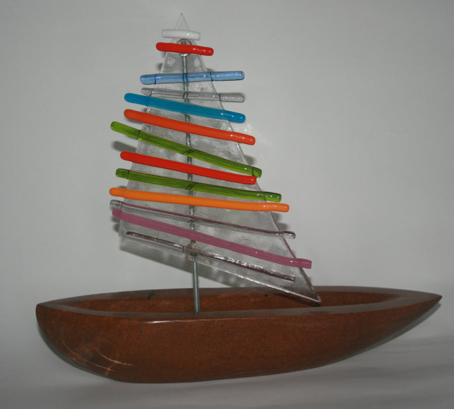 Zeilboot uit de serie Brache a vela, gemaakt van verschillende materialen en kleuren.