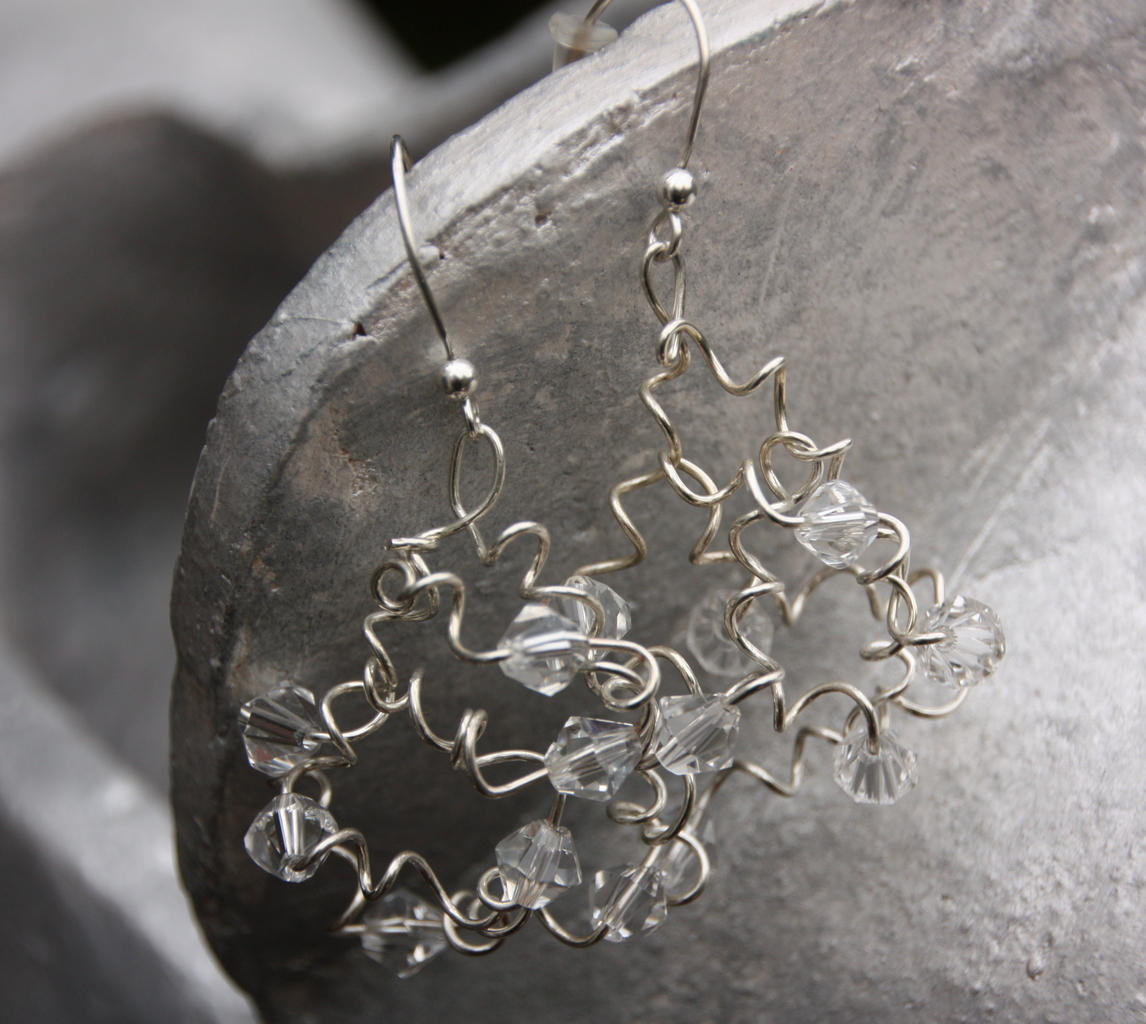 Zilveren oorbel met zilverdraad en bergkristal steentjes