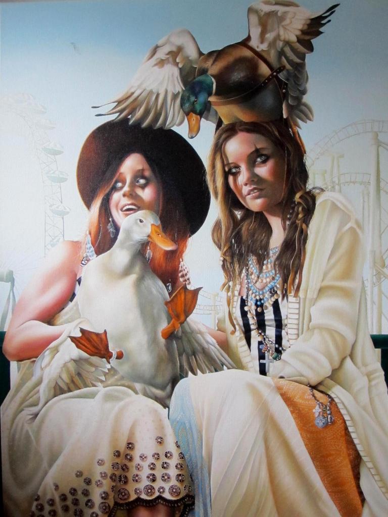 Vrouwen Woman Fair Gans Eend Kermis Duo Duck Goose