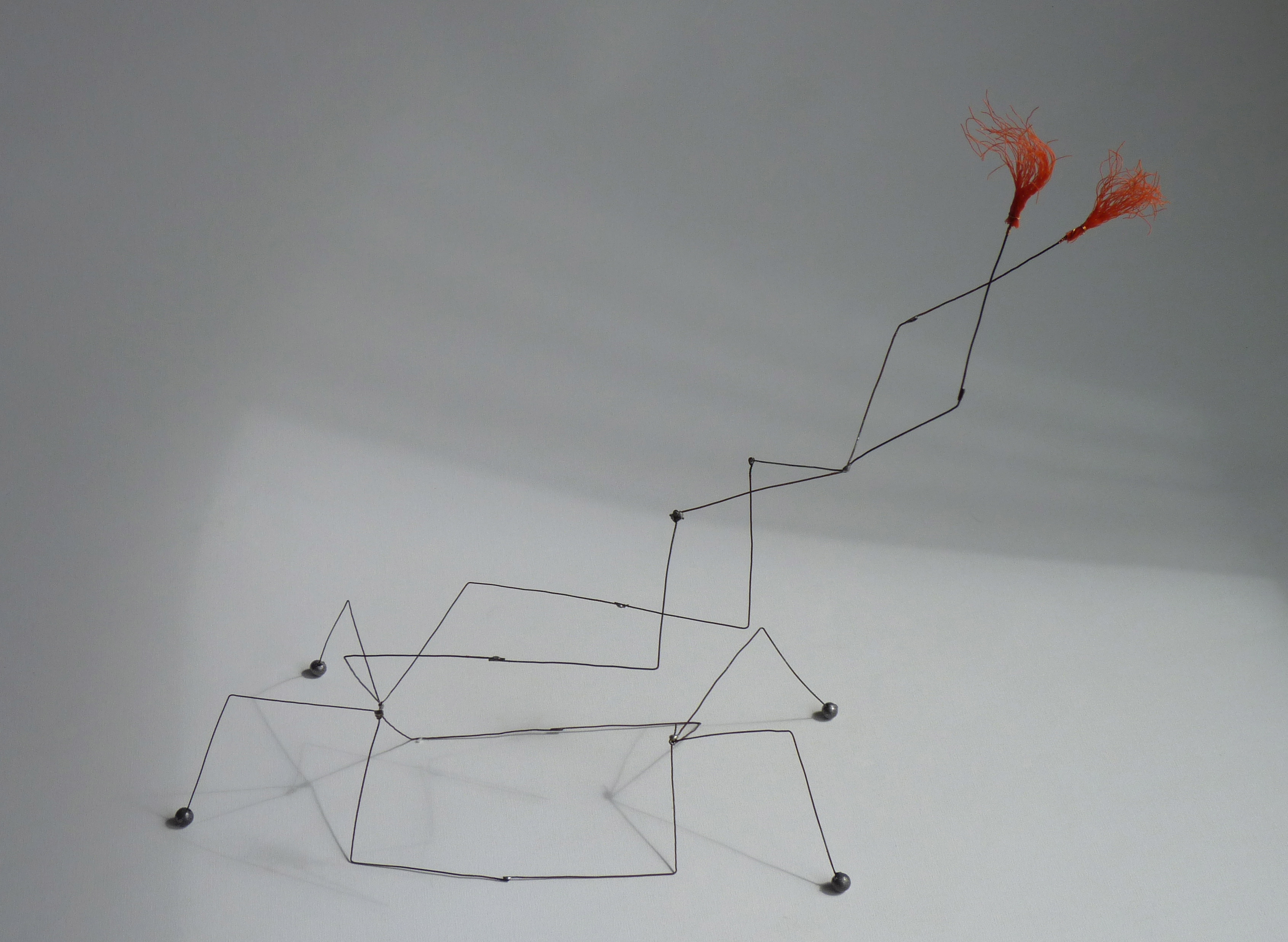 'Iets blijft - hoe verijld, versteend, verbloemd. Leven moet alles tot in eeuwigheid.' (titel naar een dichtregel van Slauerhoff). Materiaal: ijzer, lood en nylon.