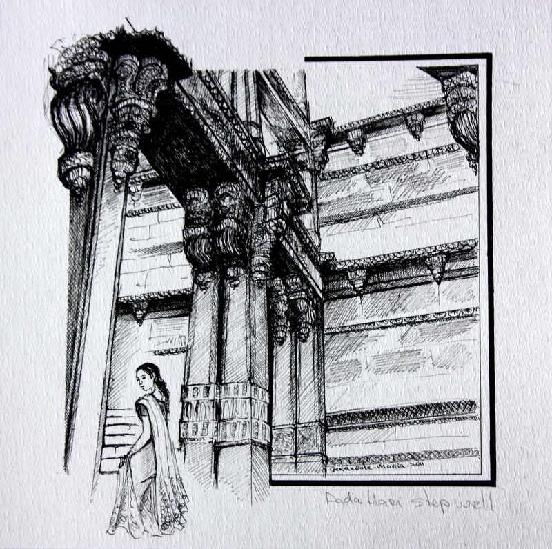 Adalaj een stepwell enkele kilometers buiten Ahmedabad