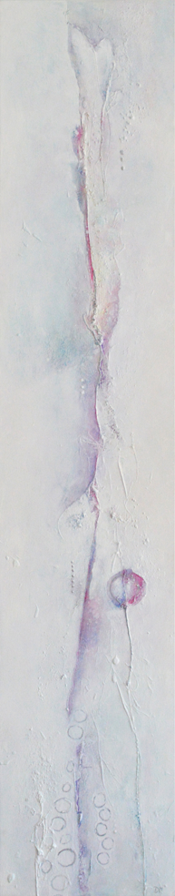 In opdracht gemaakt: Deel 2 van een tweeluik. Ze kunnen staand, liggend, naast elkaar en/of van elkaar opgehangen worden. Gebruikte materialen: o.a. acrylverf, houtlijm, boomschors en katoenpoets.