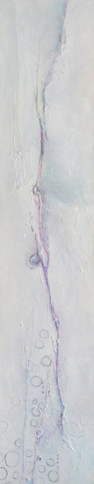 In opdracht gemaakt: Deel 1 van een tweeluik. Ze kunnen staand, liggend, naast elkaar en/of van elkaar opgehangen worden. Gebruikte materialen: o.a. acrylverf, houtlijm, boomschors en katoenpoets.