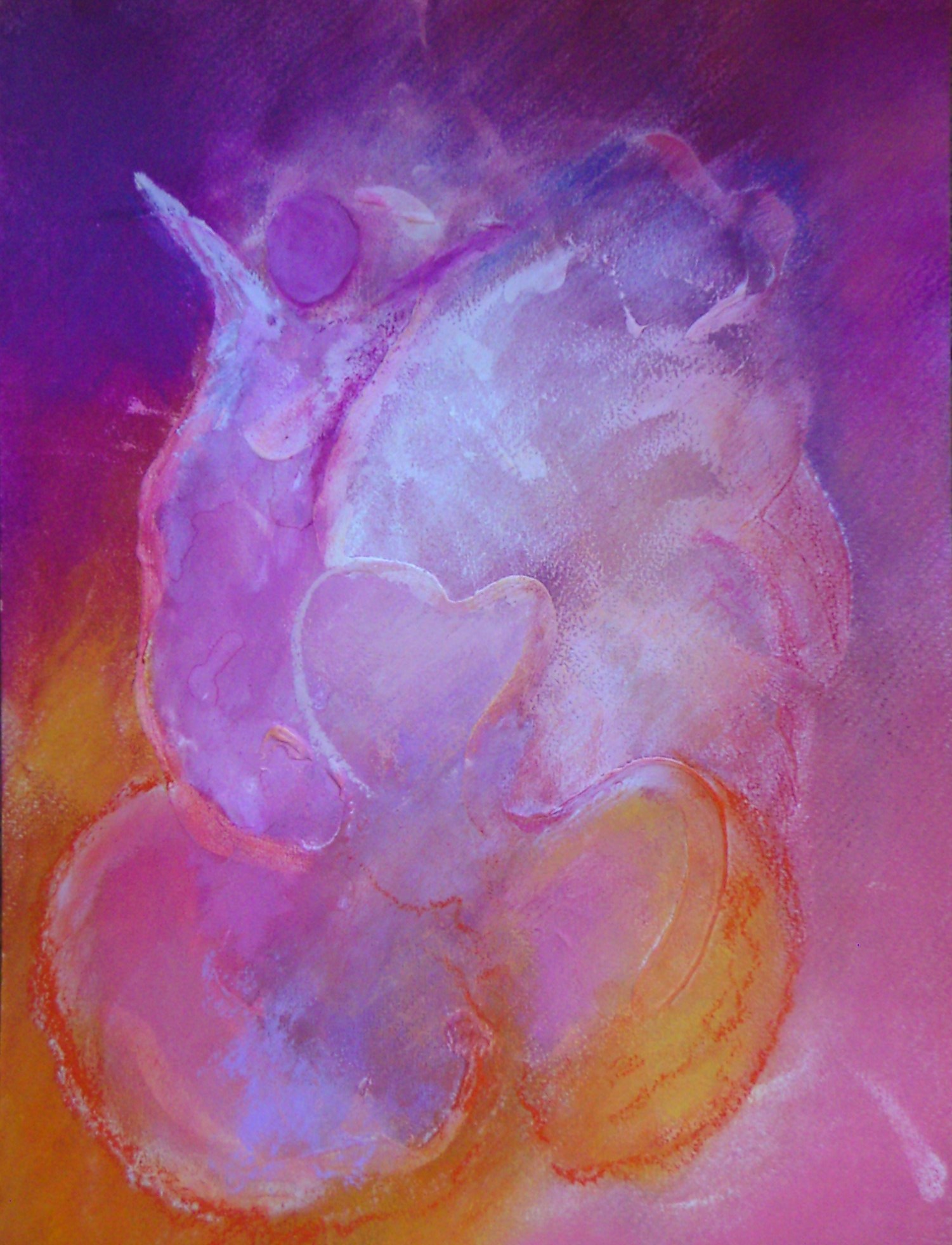 Bezield en bezielend, zó tracht ik te tekenen en te schilderen. Elk werk ontstaat vàn binnenuit, uit een inwendig voelen welke kleur, expressie en beweging uitwendig vorm wil krijgen. Ik noem het ‘mijn weg in overgave’… speelse overgave aan iets… een kracht, een Bron van leven die mezelf overstijgt. Niet IK schilder, maar het Leven schildert door mij en dat is iets ongelooflijk wonderlijks om te ervaren en met anderen te mogen delen.
