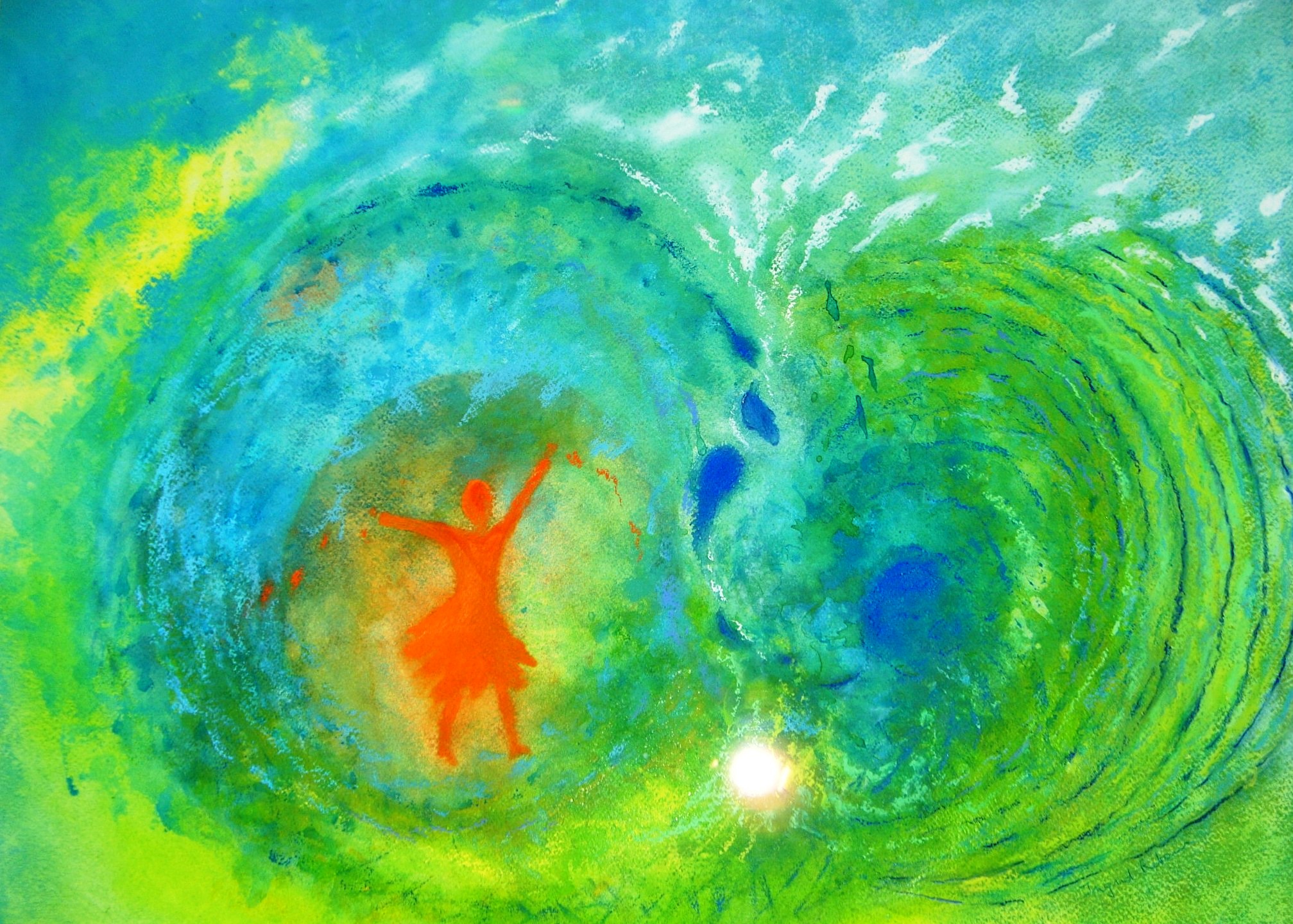 Bezield en bezielend, zó tracht ik te tekenen en te schilderen. Elk werk ontstaat vàn binnenuit, uit een inwendig voelen welke kleur, expressie en beweging uitwendig vorm wil krijgen. Ik noem het ‘mijn weg in overgave’… speelse overgave aan iets… een kracht, een Bron van leven die mezelf overstijgt. Niet IK schilder, maar het Leven schildert door mij en dat is iets ongelooflijk wonderlijks om te ervaren en met anderen te mogen delen.