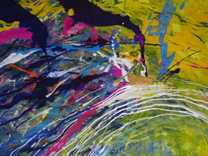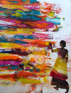 Voor mij is schilderen een vorm van spelen. Ik speel met licht, kleur en beweging, vanuit wat ik op dat moment voel. Die inwaartse stroom volg ik opdat die zich via mijn handen kan uitdrukken. Daarbij is het telkens weer een verrassing wat daaruit ontstaat. Elk werk creëert dus in zekere zin zichzelf en komt uit ergens een dimensie die verder reikt dan puur mezelf. Daarom noem ik mijn schilderijen ook geleiders van het meer dan woorden kunnen zeggen en ogen kunnen zien…