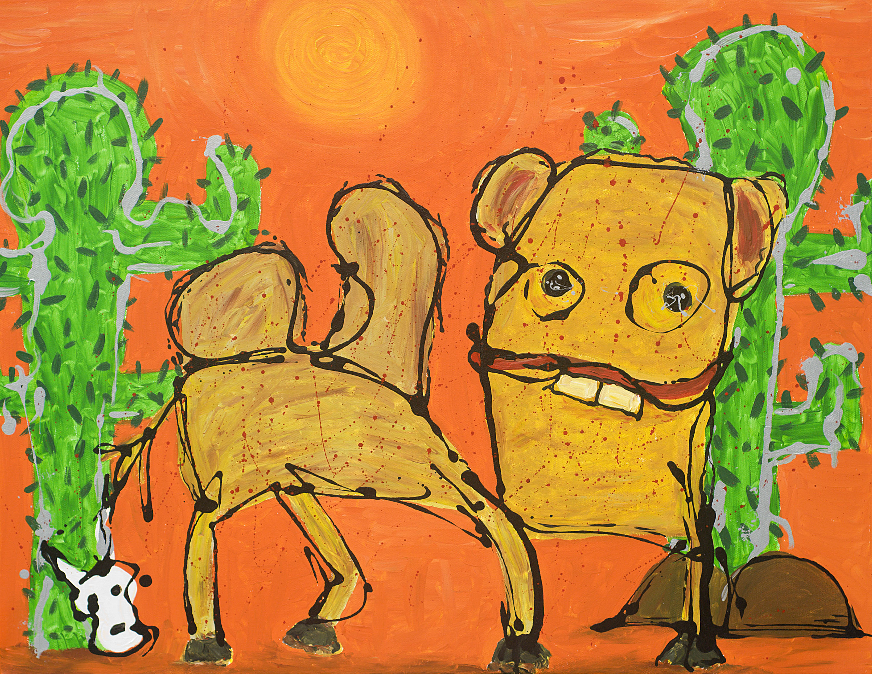 Een schilderij van een kameel. Onderdeel van het 4 luik Crazy Animals