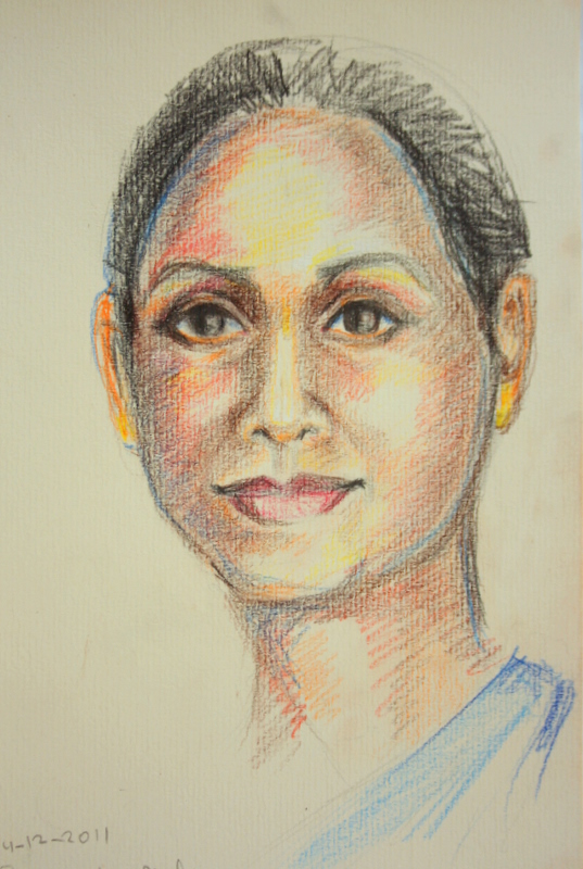 portret 19, deze charmante dame was de gastvrouw in ons hotel. Ze had iedere dag een andere prachtige sari aan
