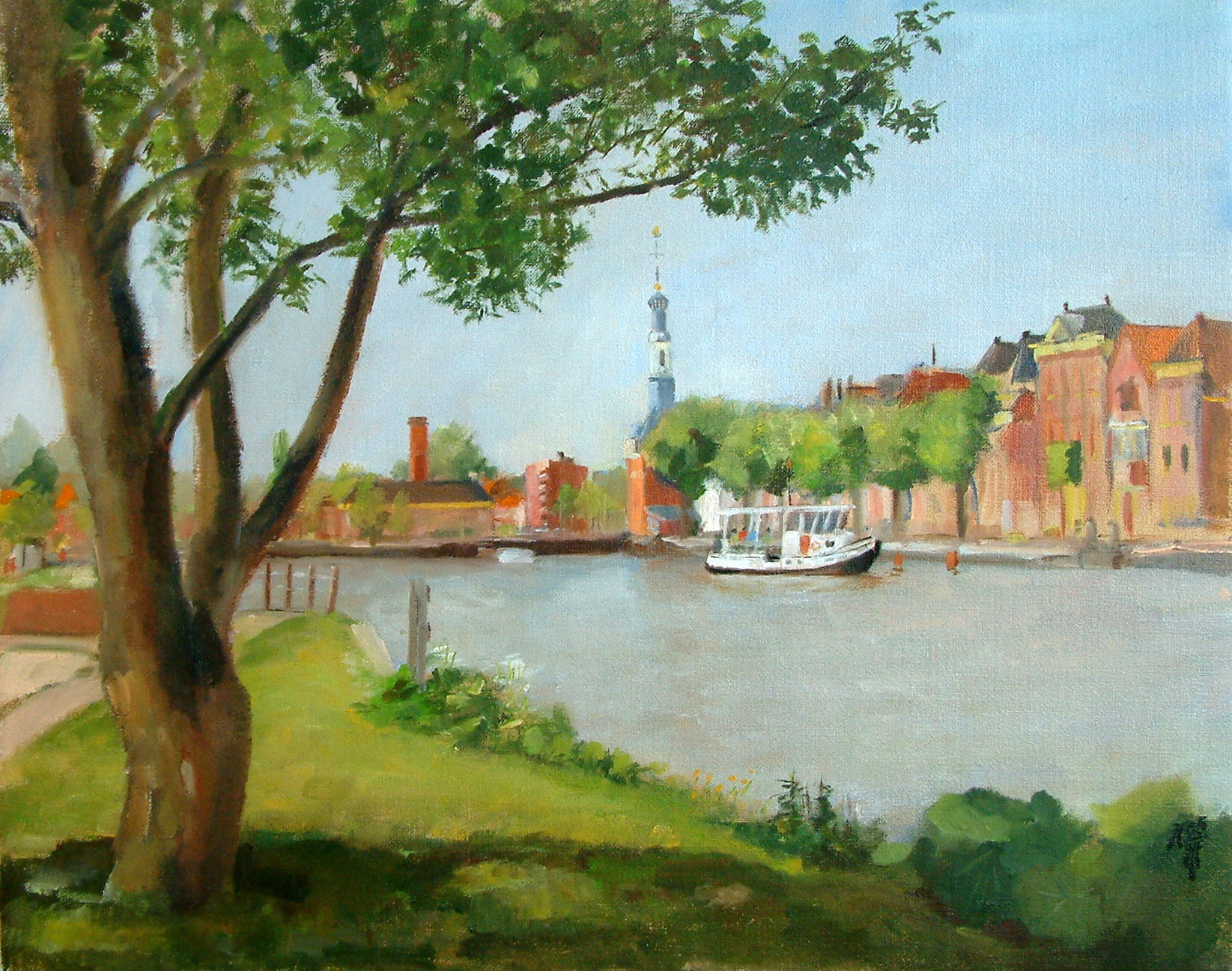 Het pontje Rooie Dorp/Bierkade in Alkmaar in olieverf op linnen
