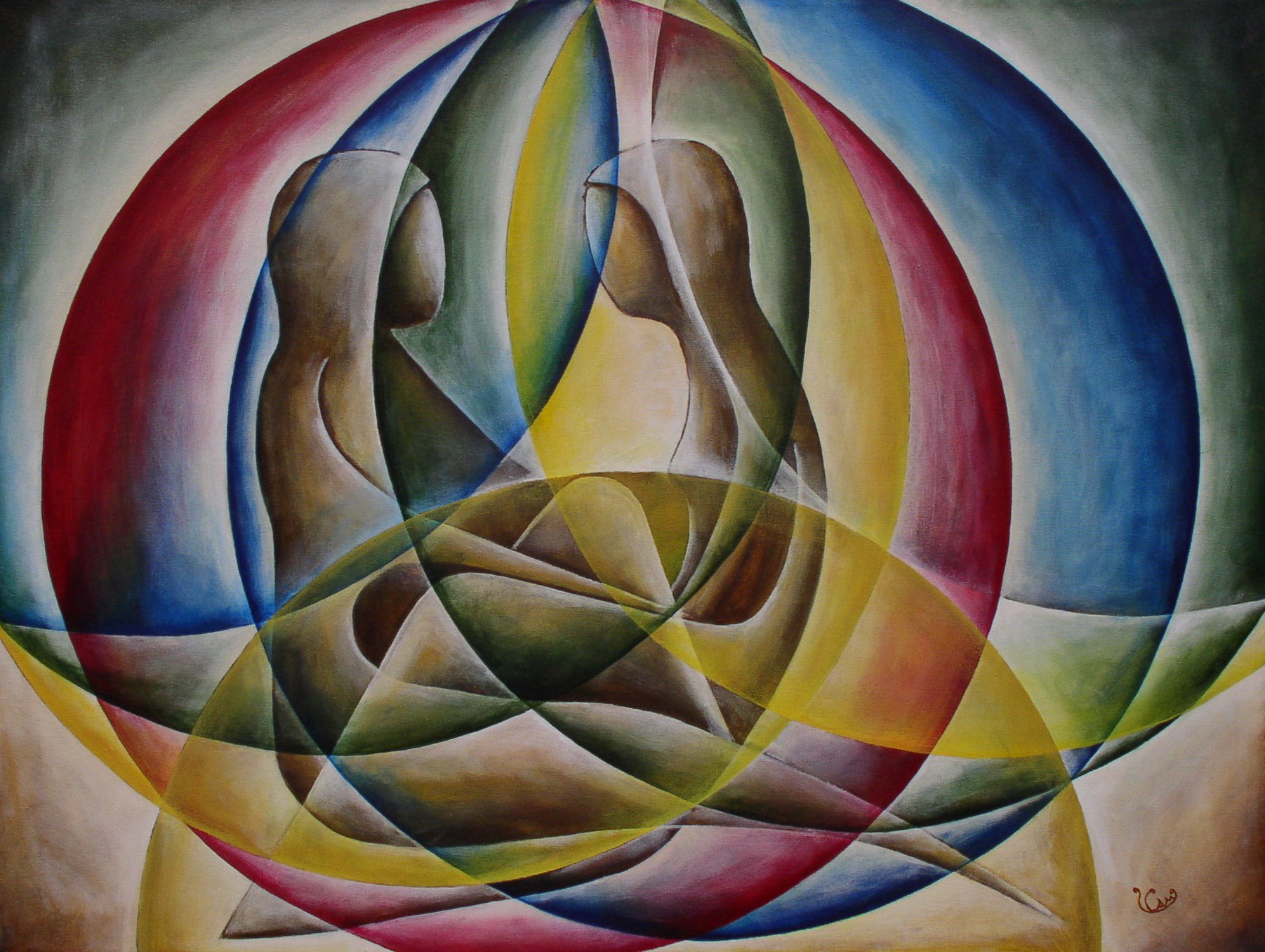 Rood Geel Blauw Groen Surrealistisch Cirkels Geeloker Spirutueel Tweepersonen