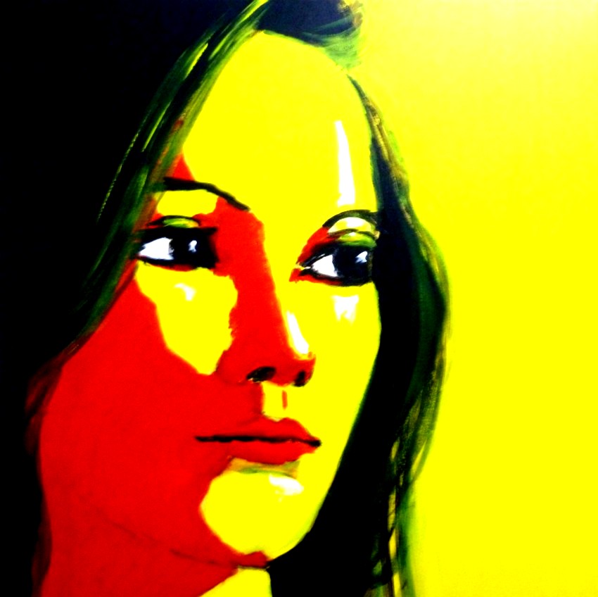 Modern Rood Geel Zwart Acryl Vrouw Portret Kleurrijk Canvas Eyecatcher Nederlands Handgeschilderd