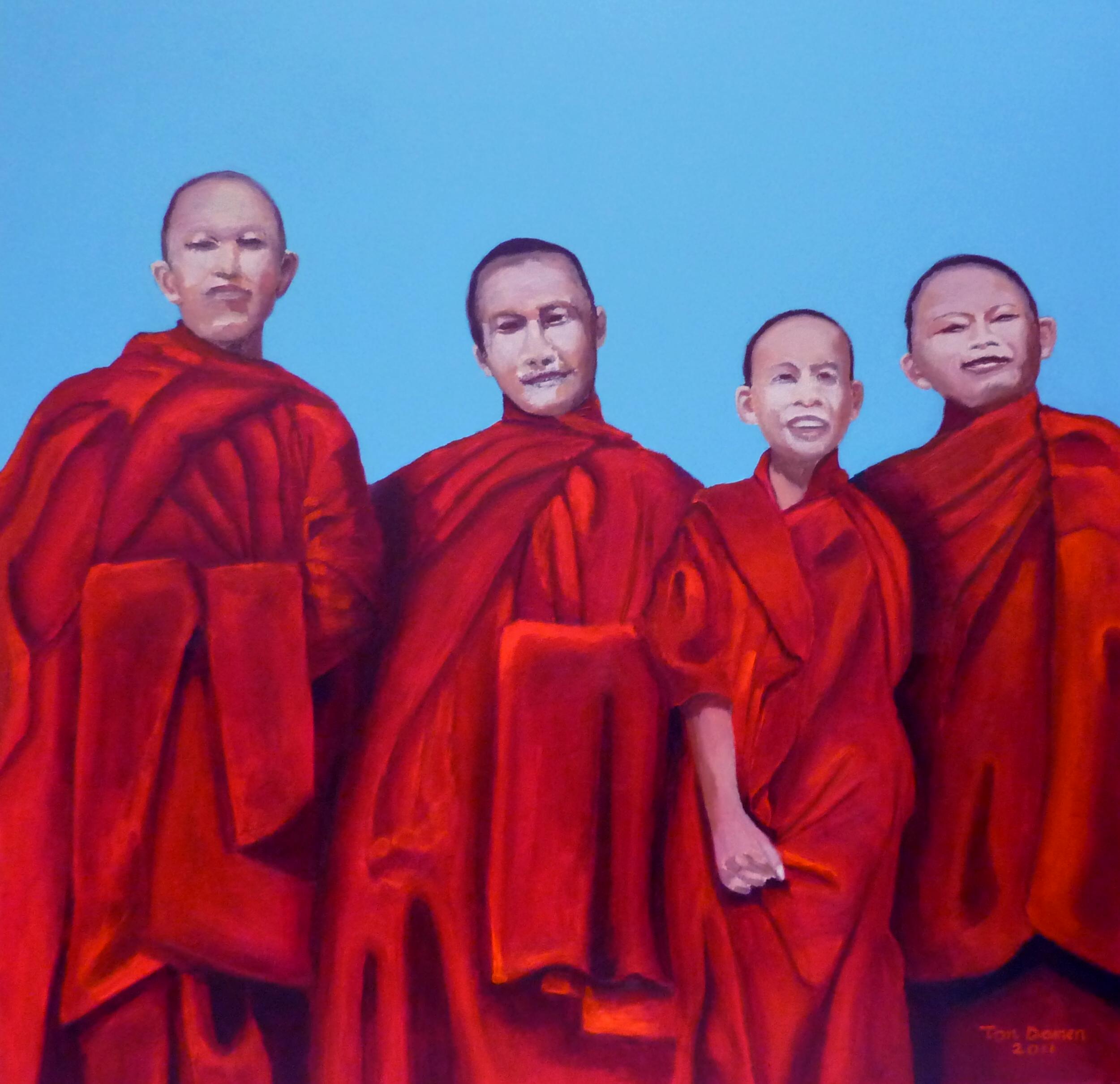 Figuratief Rood Expressief Oosters Boeddhisme Monniken Bhutan Boeddhistisch Spritueel Meditatief Vrolijk