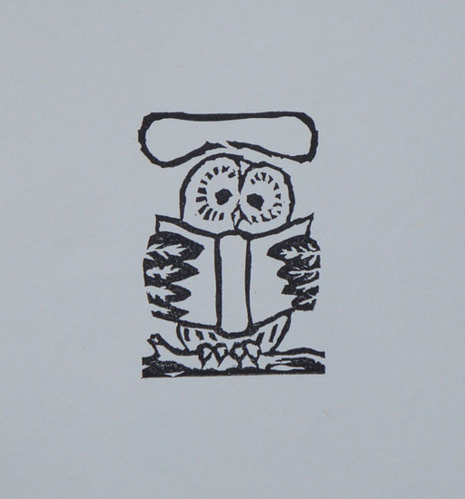 Uil als boekenlegger, label, naamkaartje of ex-libris