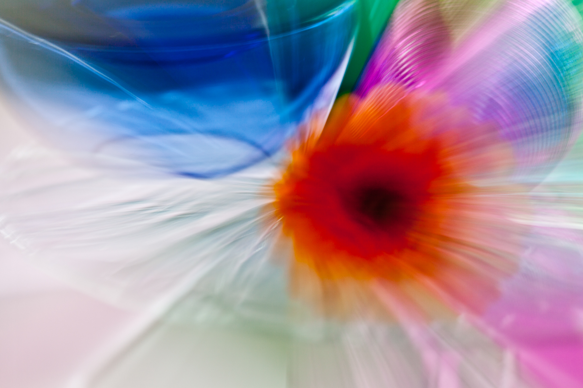 Kleurige beelden van bloemen & glazen objecten in combinatie met onscherpte door beweging.