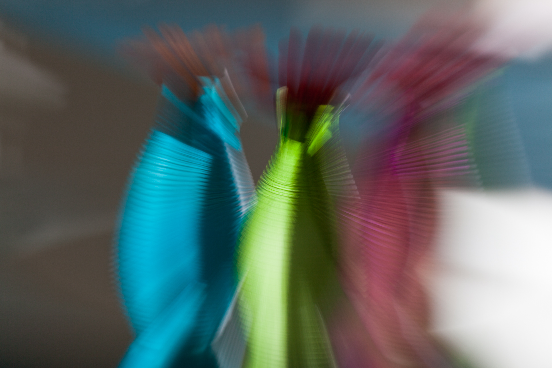 Kleurige beelden van bloemen en glazen objectien in combinatie met onscherpte door beweging.