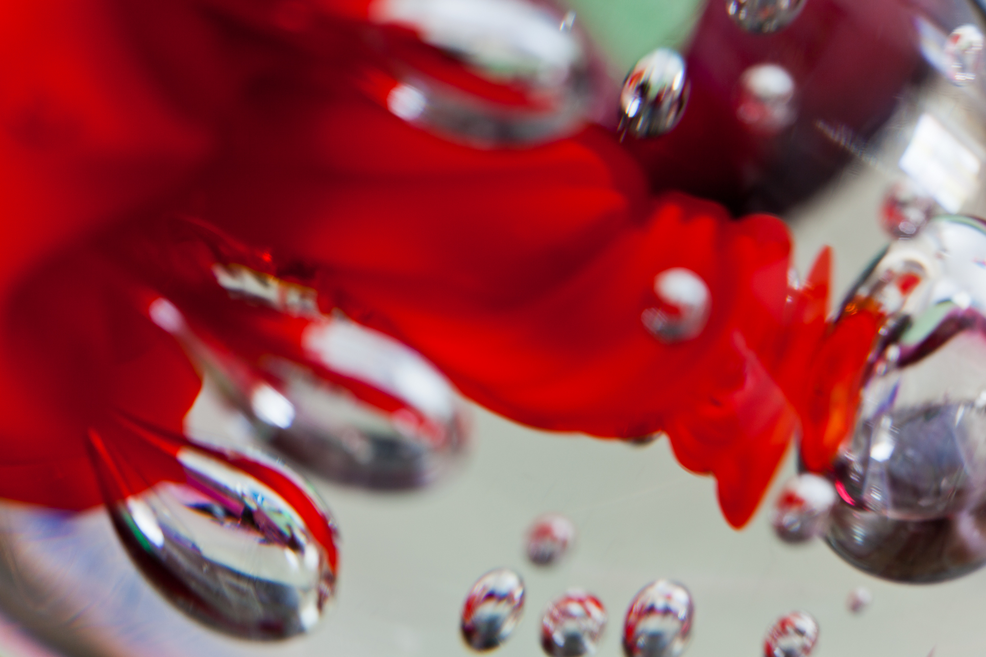 Kleurige beelden van glazen objecten in combinatie met onscherpte door beweging.