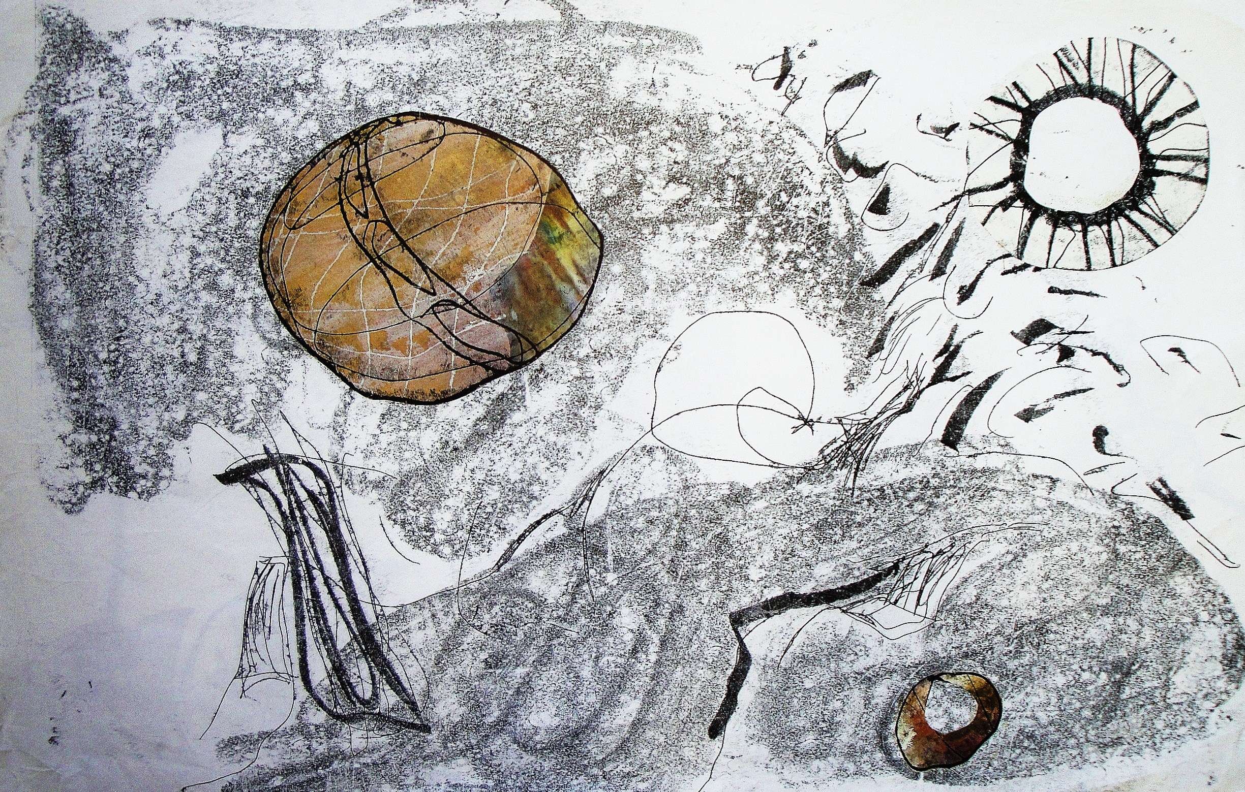 Ik werk impulsief,gedreven en intuïtief.De natuur is mijn grootste inspiratiebron.De landschappen in mijn etsen en monotypes stralen een bepaalde sfeer uit:romantisch,dreigend, verlaten en spannend.Het onderwerp kan beïnvloed worden door iets inspirerends wat op mijn pad komt.Naar aanleiding van een bezoek aan de voorraadkelders van de oude medische instrumentenwinkel van A. van der Kuip te Utrecht,heb ik met dit medisch materiaal zowel ruimtelijk werk,dozen en glazen boxen,als vlak werk gemaakt waaronder monotypes,clichedrukken,collages en tekeningen.