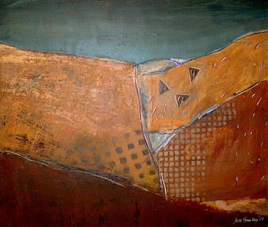 Oker Landschap Geabstraheerd Acryl