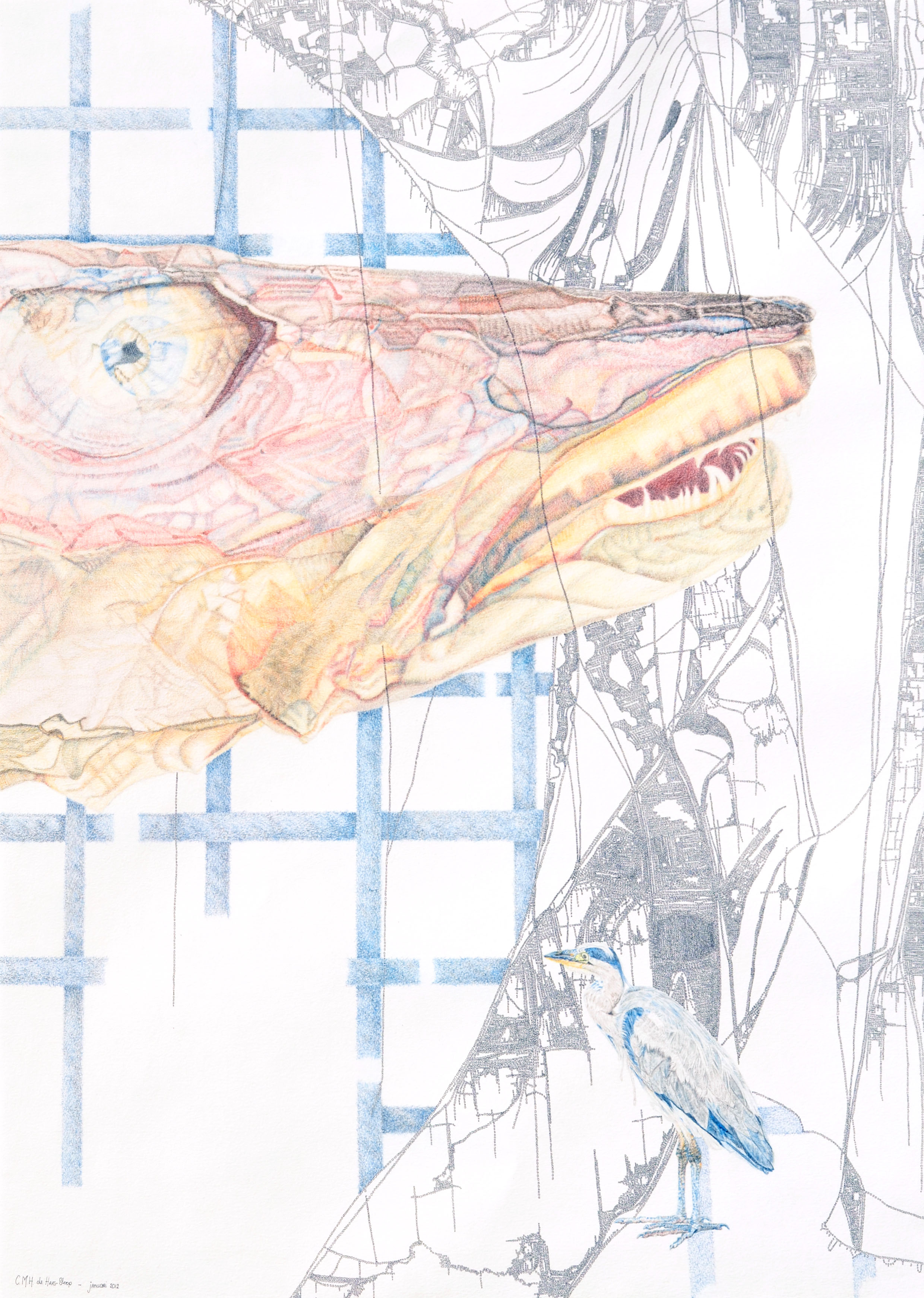 Vis Gevangen Aquarel Groot Eten Touw Inkt Reiger Grote Kleurpotlood Net Visnet Hap