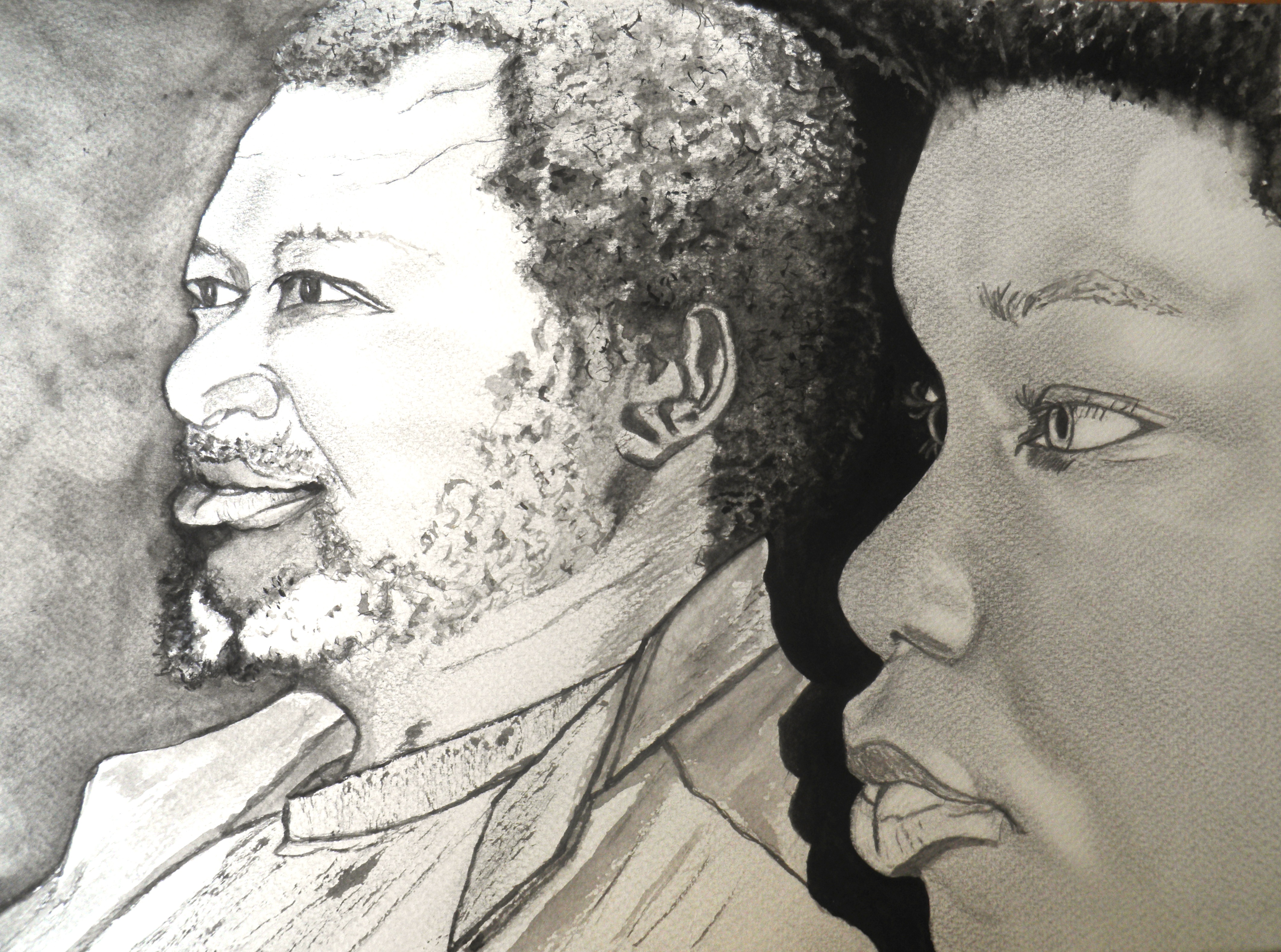 Afrika Portret Africa Potlood Tekening Sun Drawing Zoon Vader Father Pencel