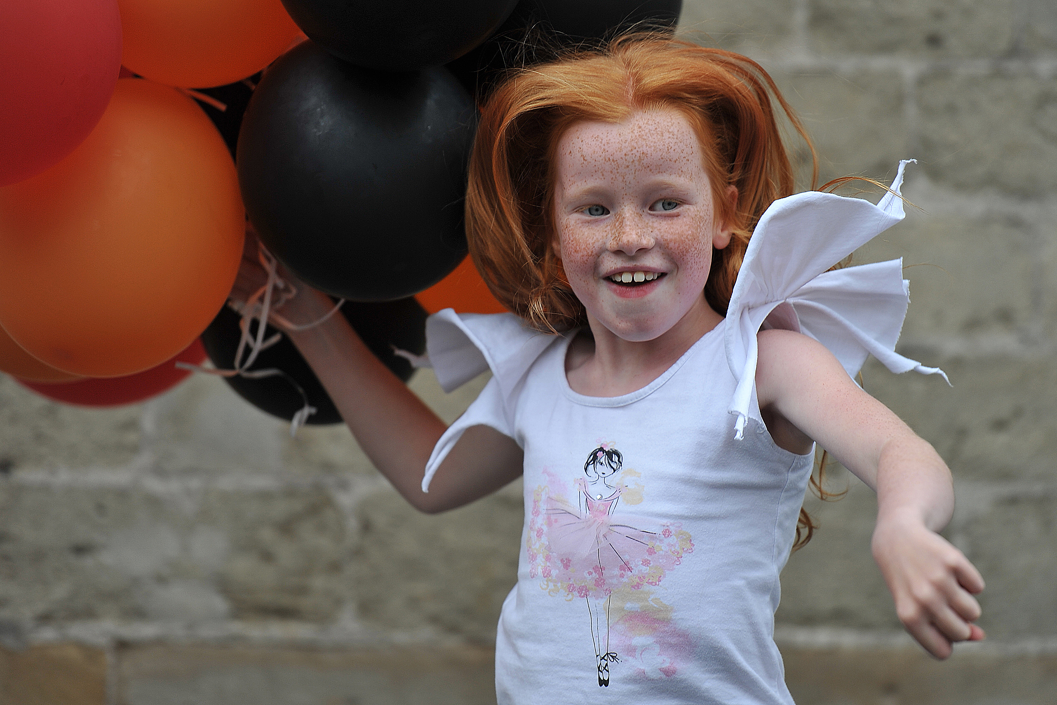 Roodharig meisje met ballonnen .