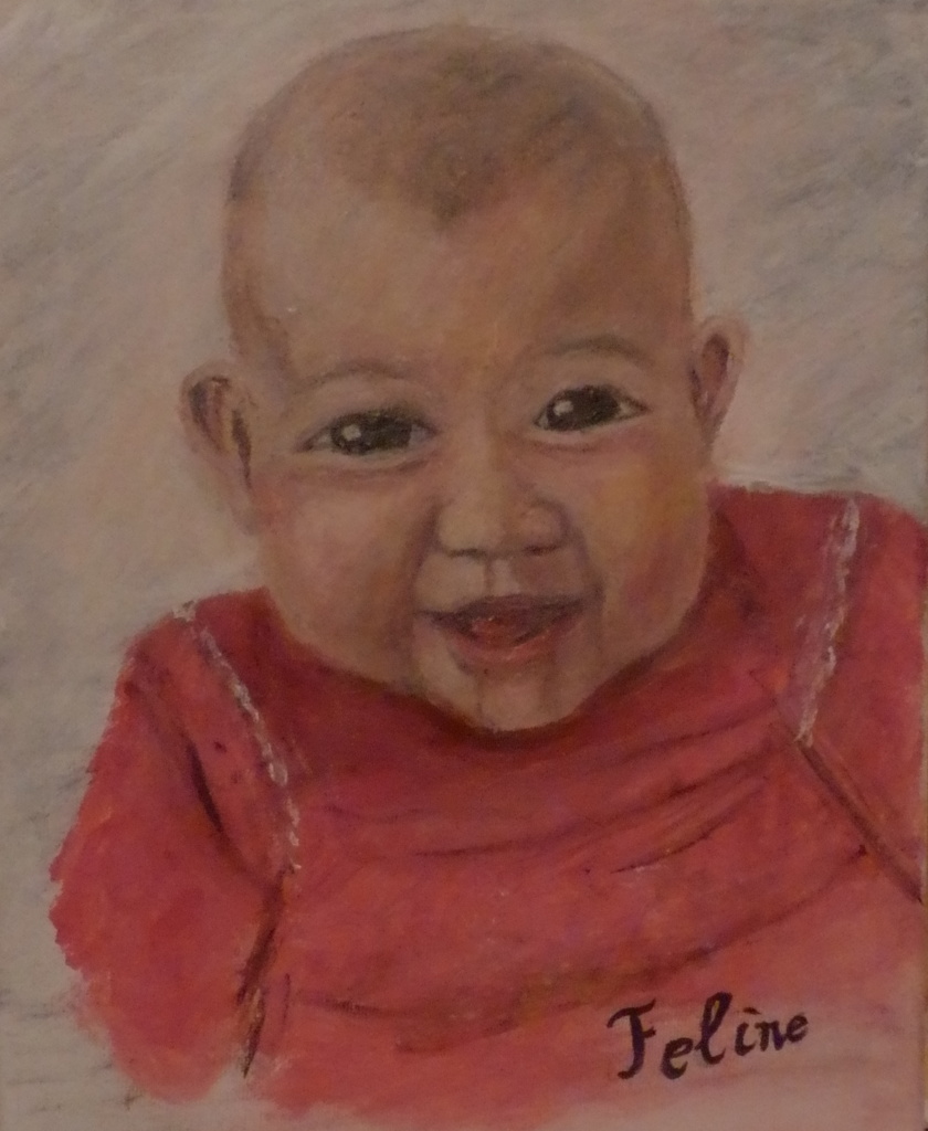 Feline, onze kleindochter, toen ze een half jaar oud was.