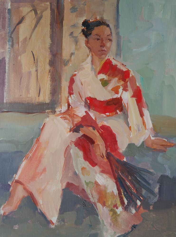 Zittend model in kimono