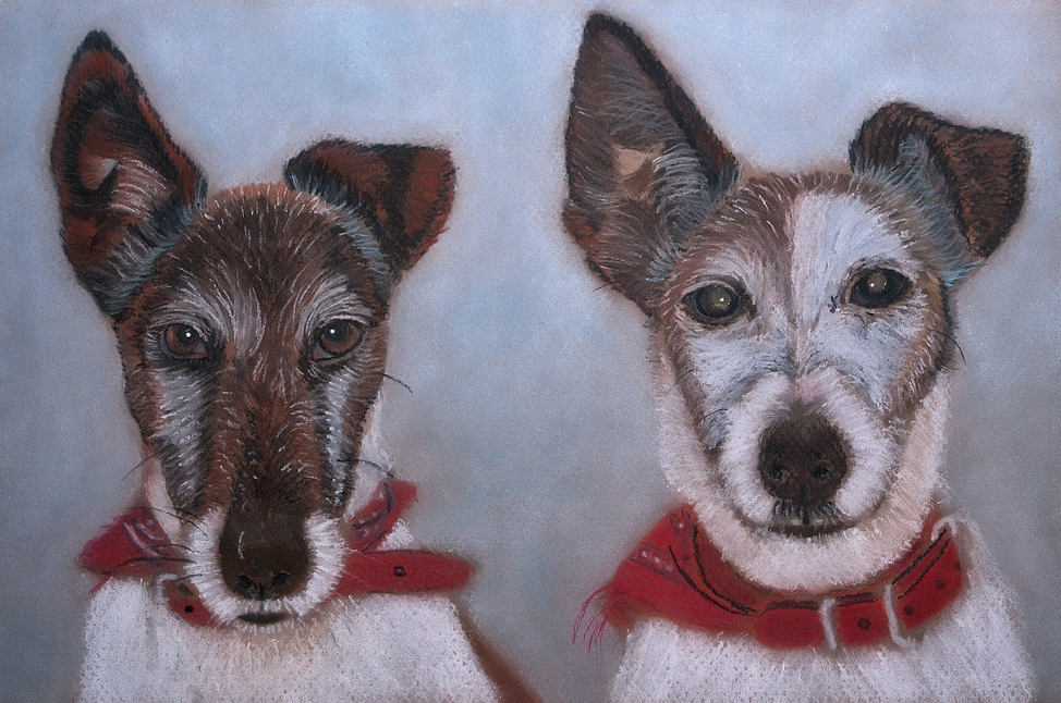 Terriers Bennie en Britje op canson mi teintes papier 20x30 cm