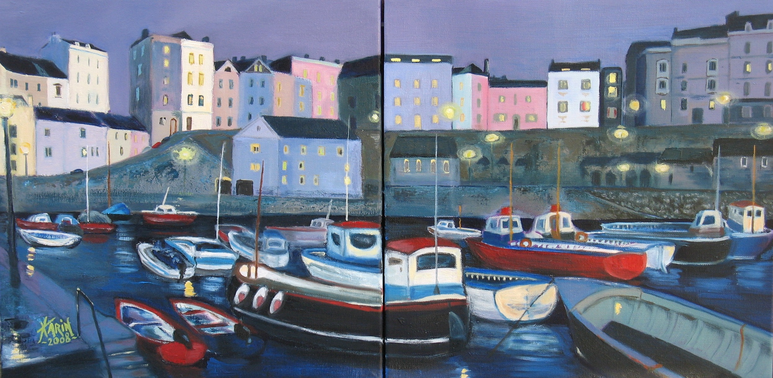 Paars Tweeluik Harbour Purple Haventje Diptych Tenby