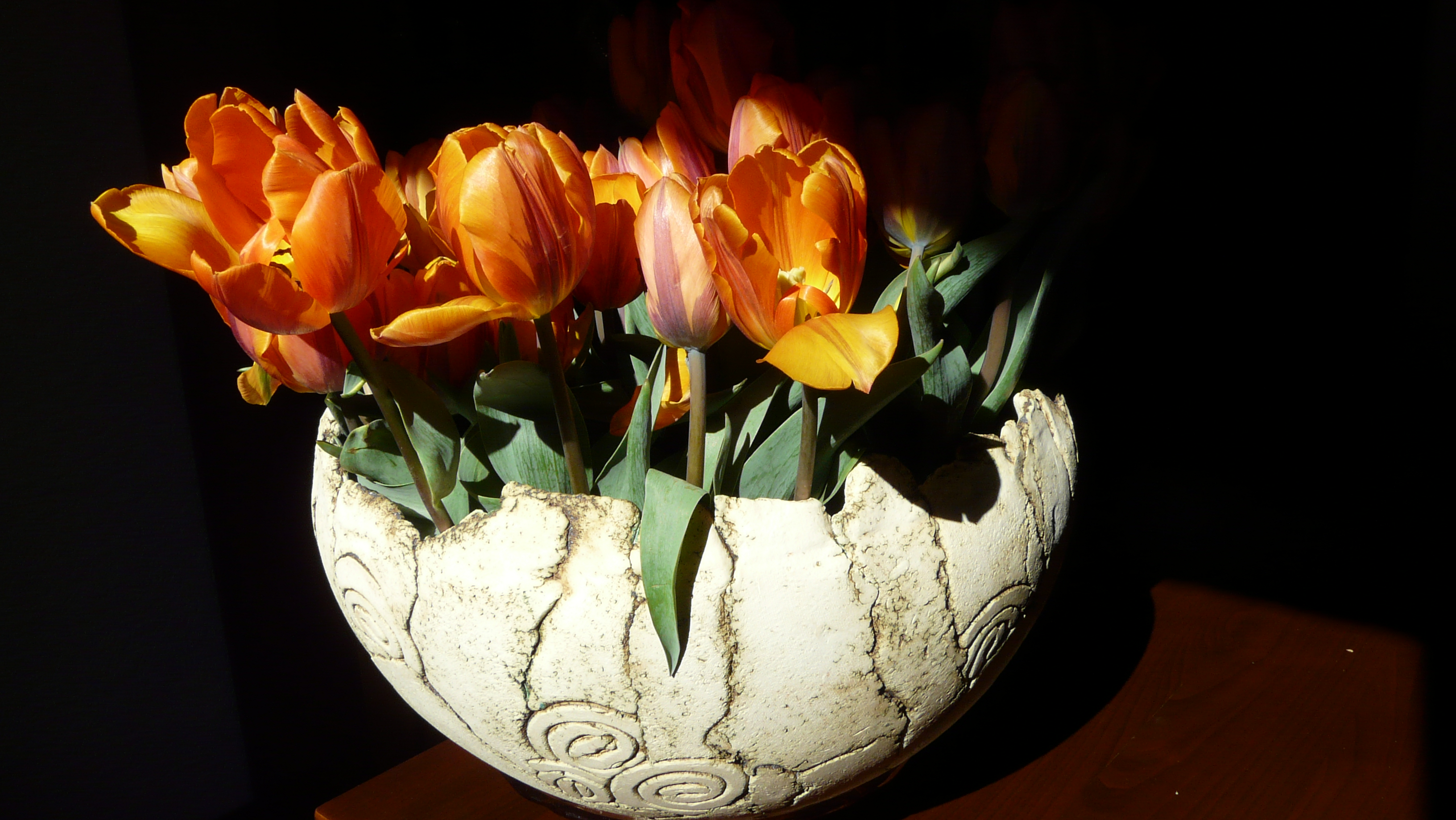 zonlicht op tulpen in schaal