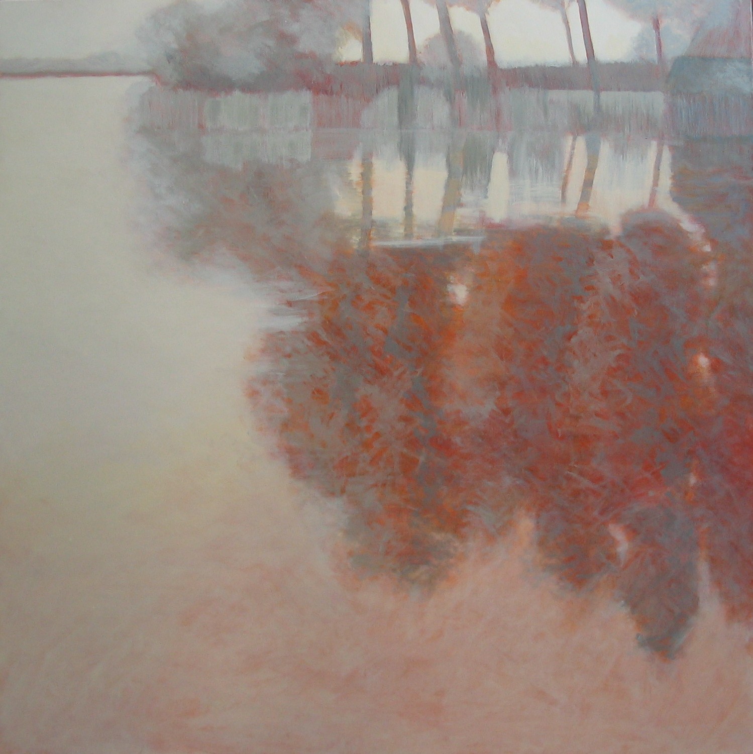 Mijn schilderijen zijn in acrylverf op doek of paneel, in een beperkt kleurenpalet. Ik heb de Rietveld Academie afgerond: binnenhuisarchitectuur. Schilderlessen heb ik gevolgd op de Gooische Academie.