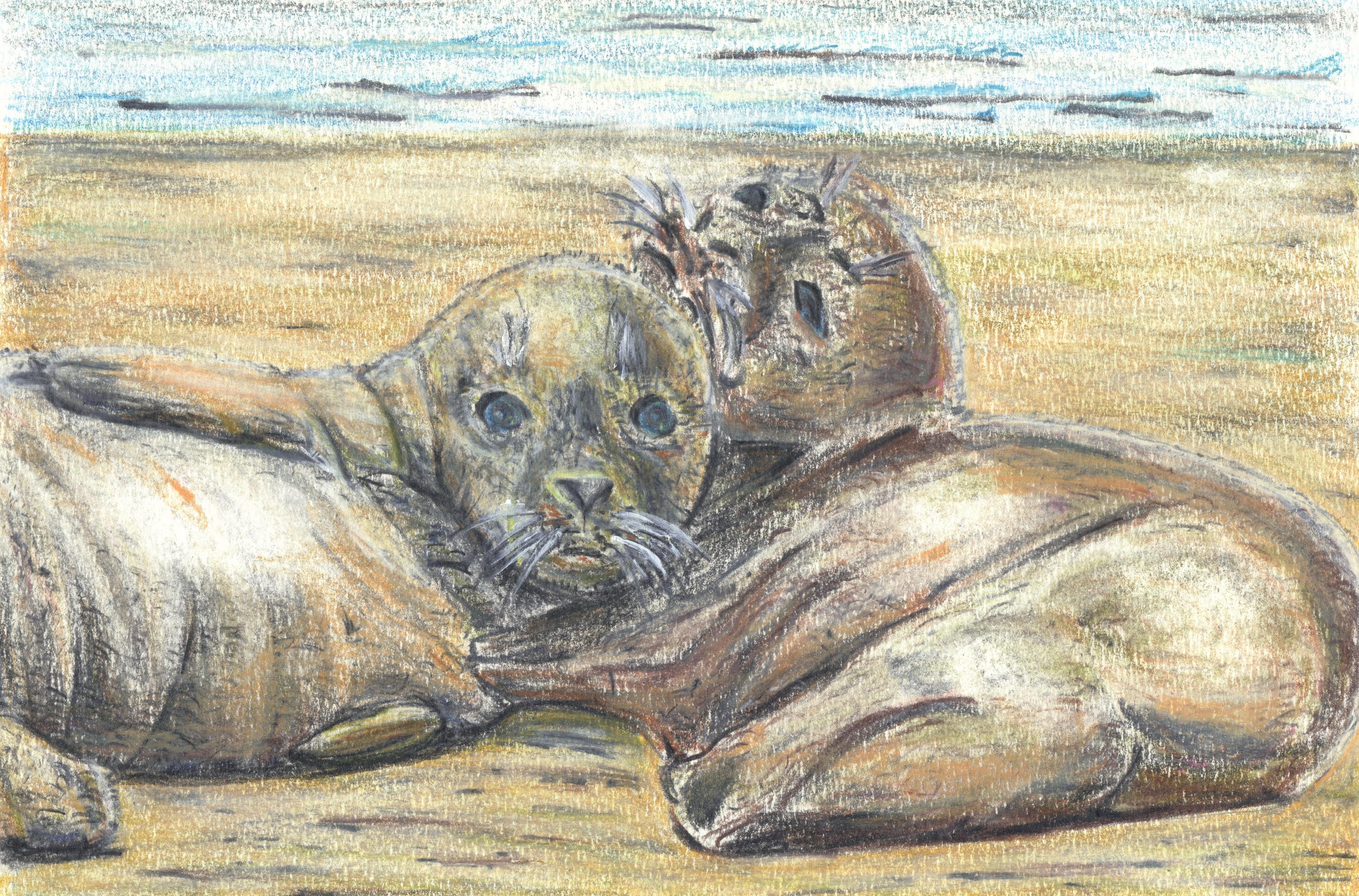 spelende zeehonden op het waddenstrand