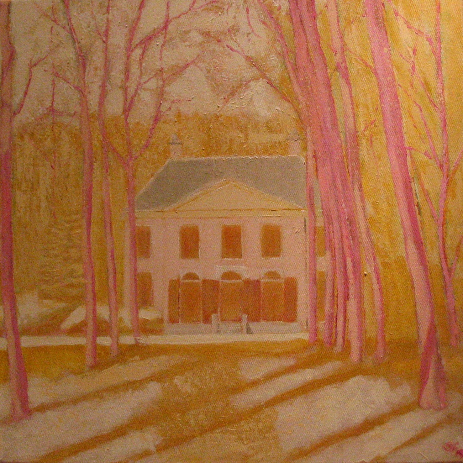 Mijn schilderijen zijn in acrylverf op doek of paneel, in een beperkt kleurenpalet. Ik heb de Rietveld Academie afgerond: binnenhuisarchitectuur. Schilderlessen heb ik gevolgd op de Gooische Academie.