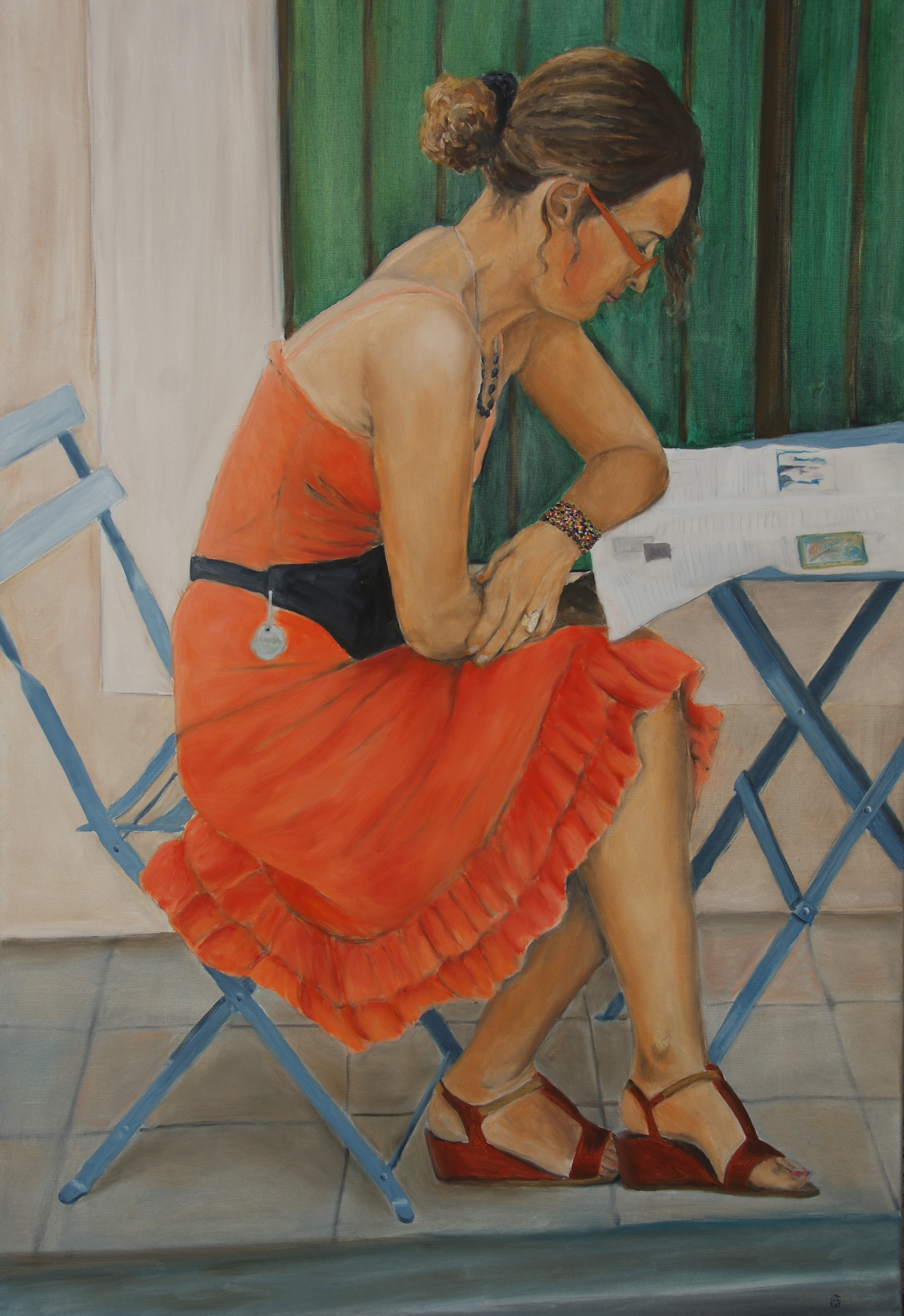 Portret van een meisje dat de krant leest