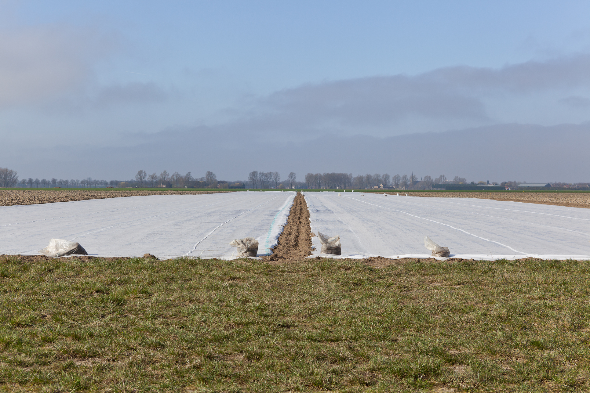 Vlak minimalistisch polderlandschap in voorjaarstinten