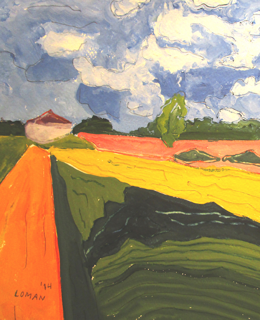 Karel Loman schildert expressief. Zijn landschappen en stads- en dorpsgezichten zet hij in heldere kleuren op papier. De sfeer van het landschap staat bij hem voorop. Loman werkt voornamelijk met temperaverf, aangevuld met inkt of potlood.