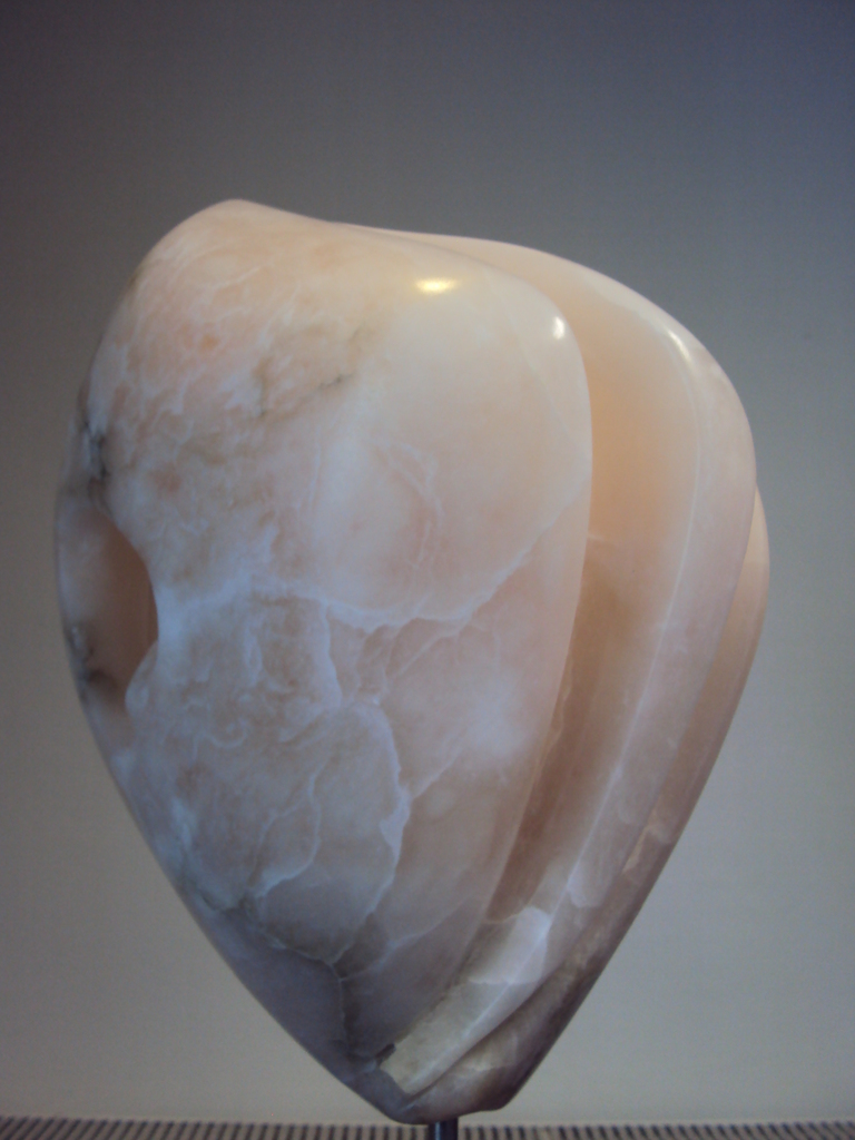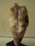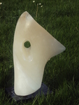 THEA SABELIS (1945)geboren te'sGravenhage .Mijn beelden zijn abstract ,de harde steen die ik bewerk tot een aaibaar lap stof.