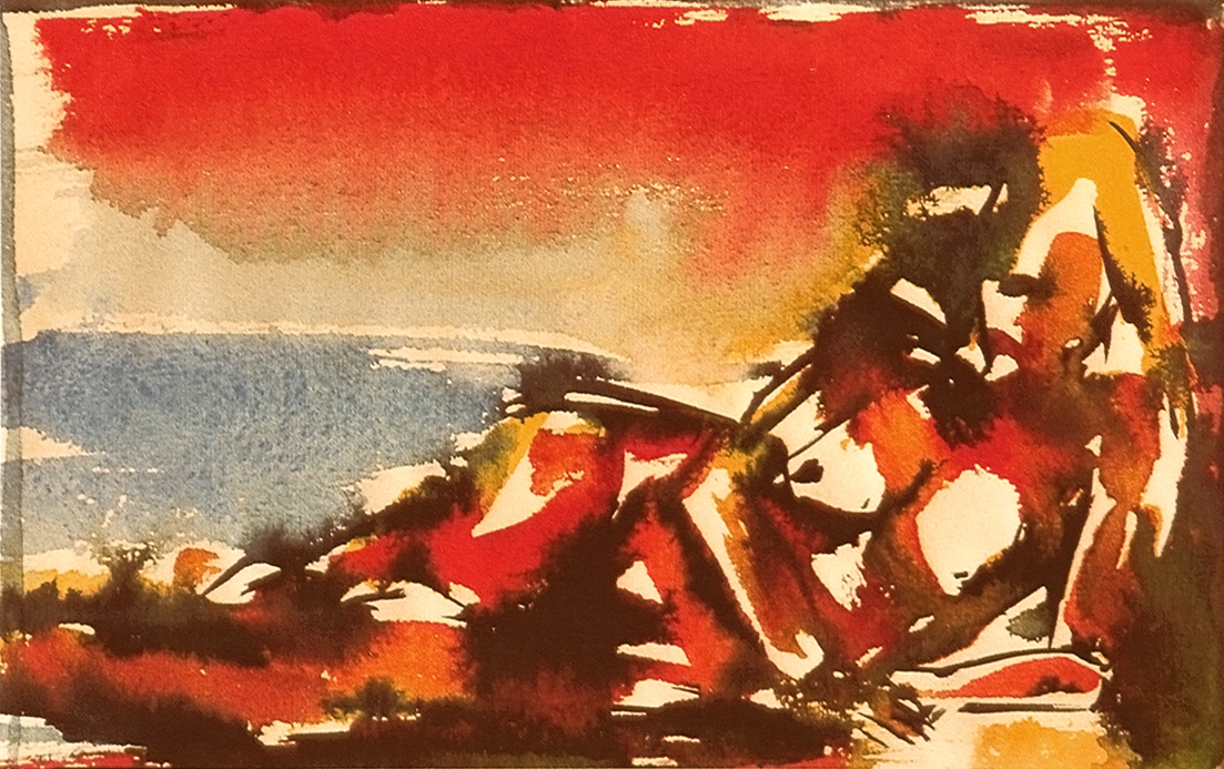 studie vrouw liggend aquarel