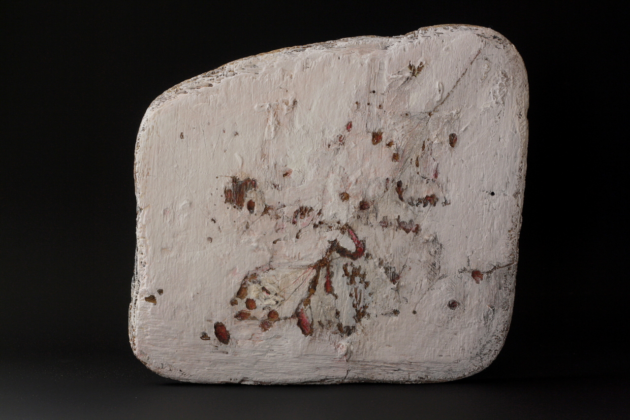 Gejut plankje uit gekerft acryl en kleurpotlood