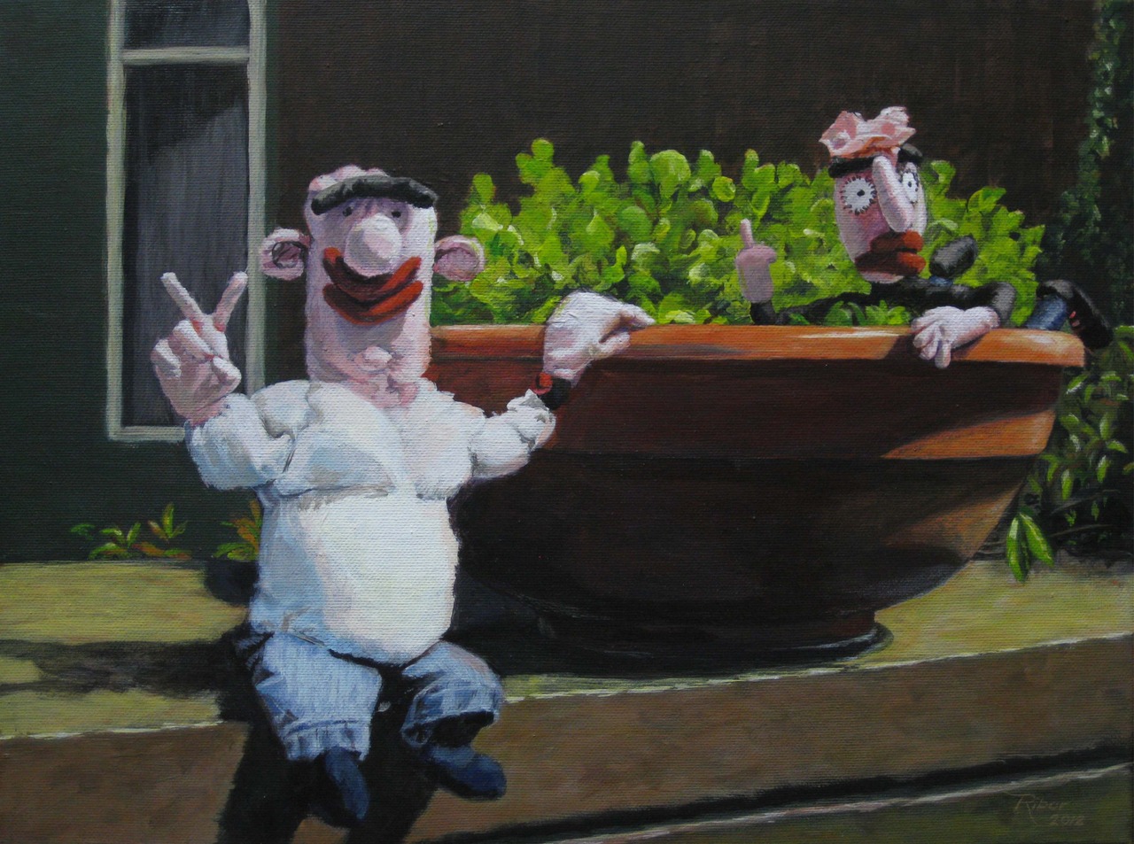 Zon Pot Man Stilleven You Raam Pop Poppen Leven Lekker Muur Stil Bloempot Zitten Fuck Sla Vredesteken Peace Stop Zelfgemaakt Pluk Dakterras Lappenpop Nienke Zonnetje