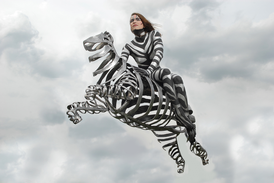 Serie van 6 foto's. Zebrabeeld door Bart Somers. Bodypaint door Marianne Parie. Model Loes Ceelen. Fotografie Monique Hebly.