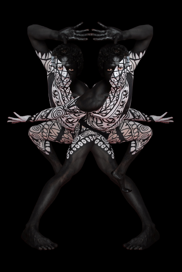 Bodypaint met danser Lorenzo. Bodypaint Marianne Parie. Fotografie Monique Hebly