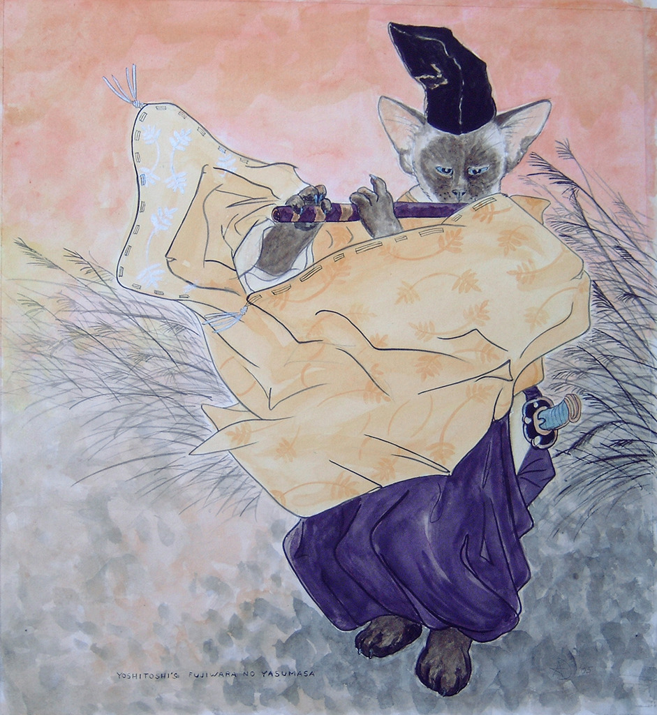 Een 'omgekatte' versie van Tsukioka Yoshitoshi's fluitspeler
