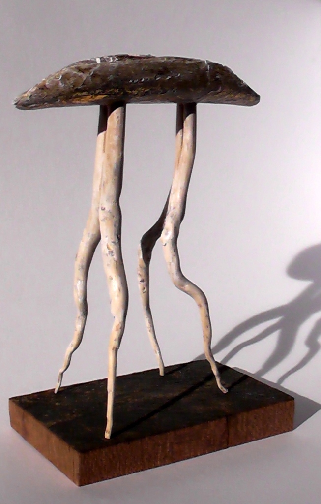 Mijn objecten komen vaak voort uit gevonden voorwerpen. Ik combineer hout, met zelf ontworpen bronzen beelden en natuurlijke materialen.