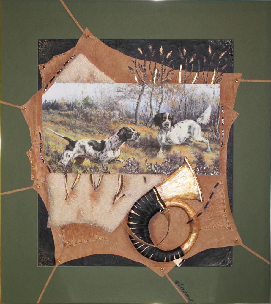 Metal Hond Collage Beige Paint Dog Wood Textile Leather Embroidery Dimentional