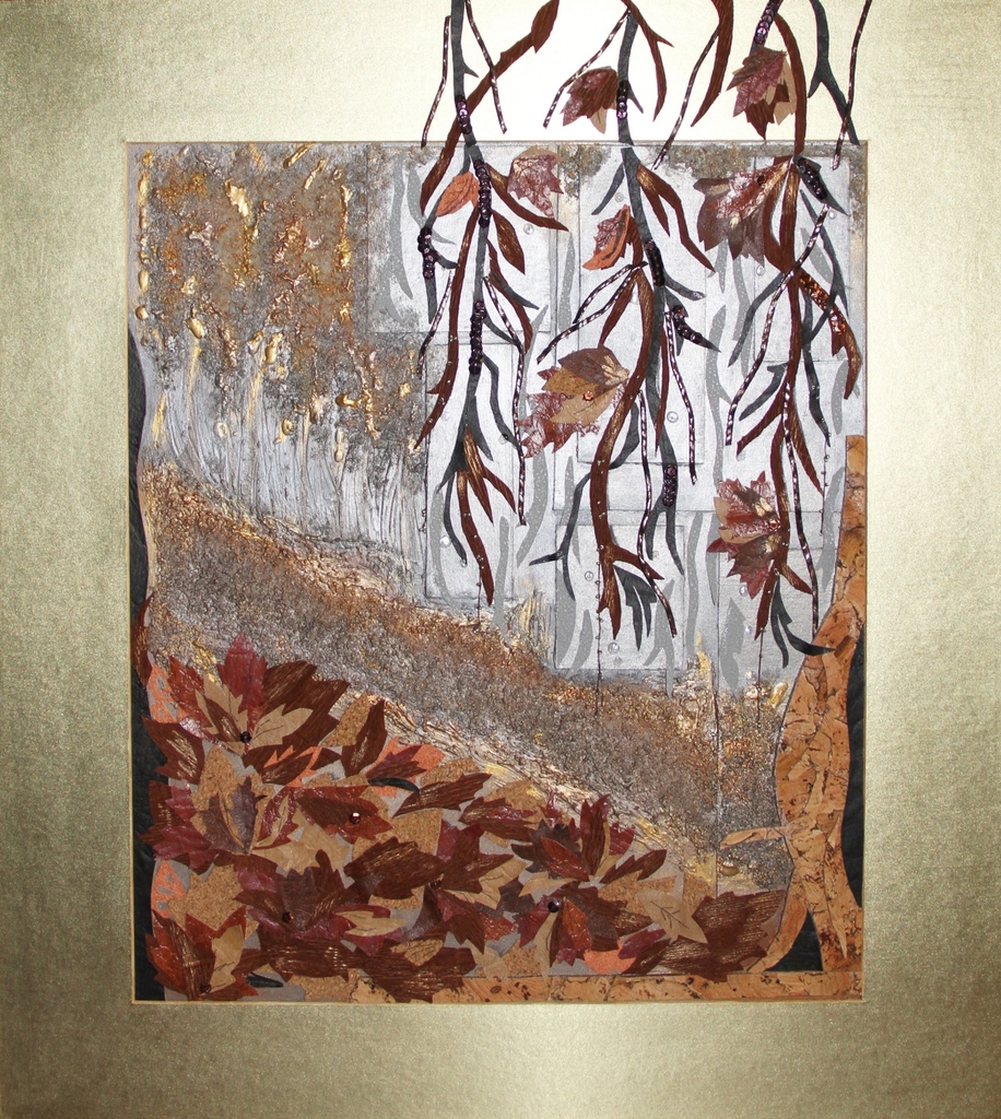 Metal 2 Collage Beige Paint Wood Textile Leather Embroidery Dimentional
