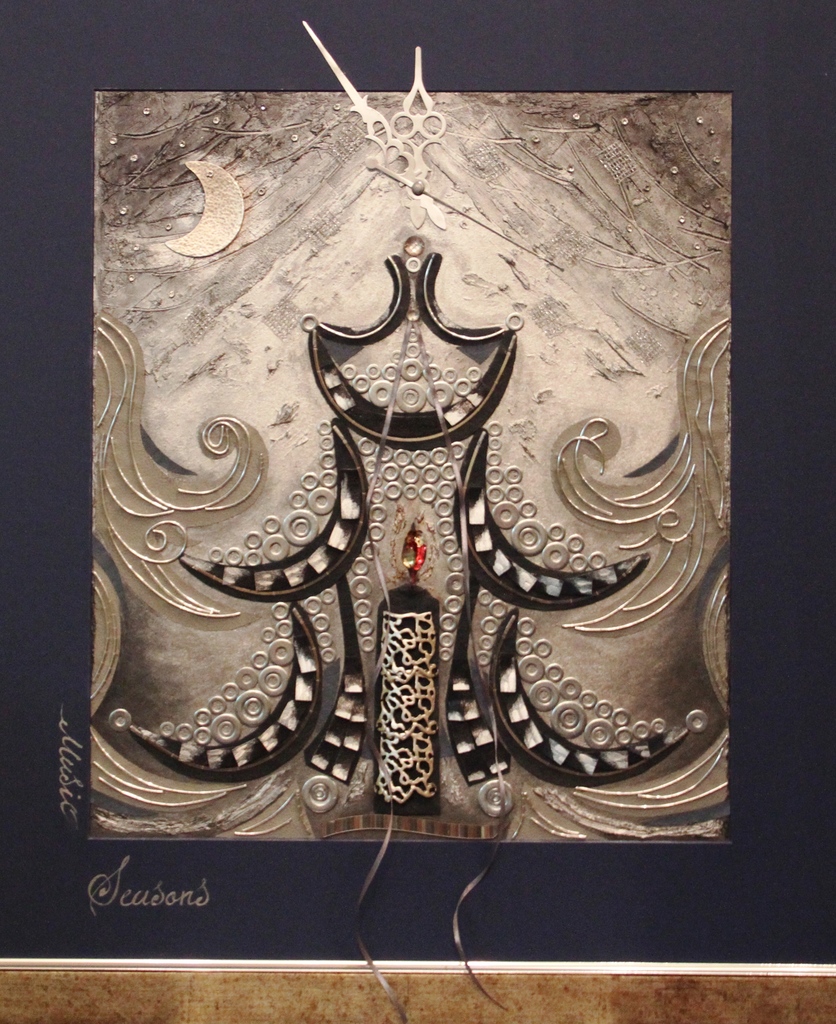 Metal Collage Beige Paint Wood Textile Leather Embroidery Dimentional Kerst