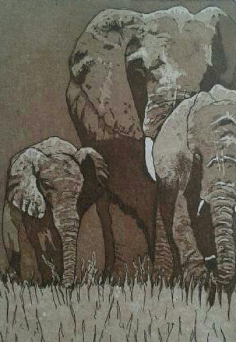 Ets Aquatint Olifanten Serie