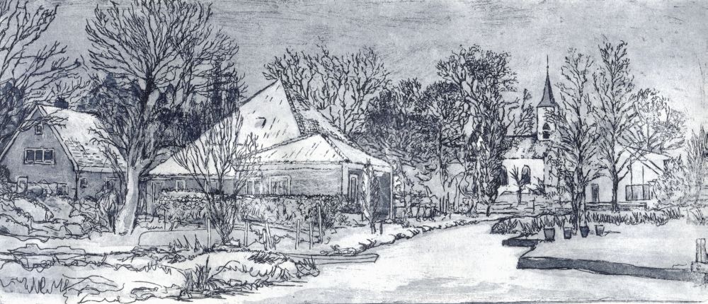 Holysloot gezien vanaf het bevroren Holysloter Die. Ets/aquatint.